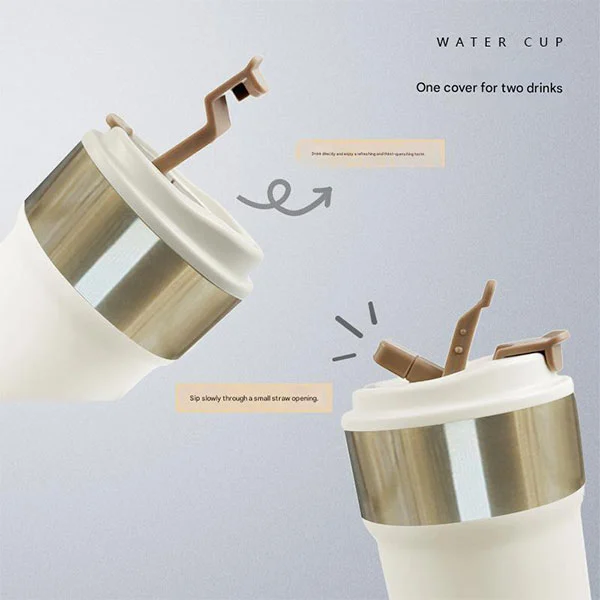 Der 17-Unzen-Reisebecher ist mit einer Staubschutzhülle ausgestattet, um zu verhindern, dass beim täglichen Gebrauch kleiner Staub, Insekten und andere Fremdkörper hineinfallen. Es verfügt außerdem über ein Dual-Drink-Design.