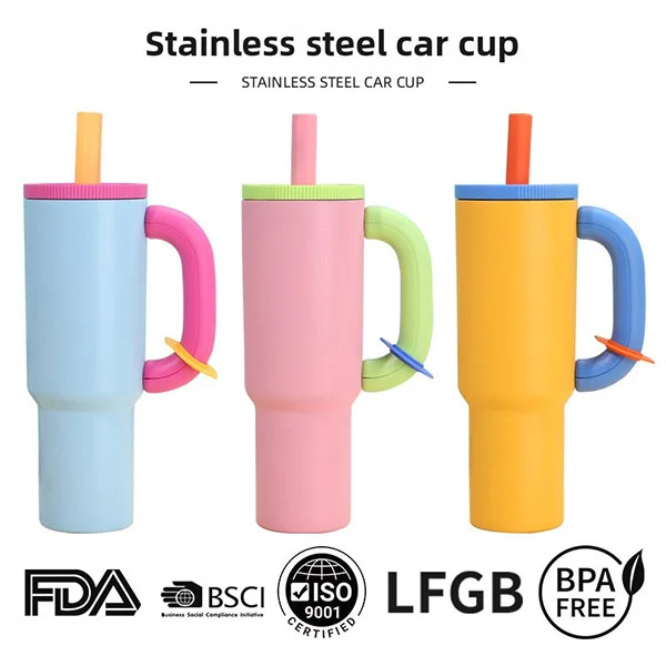 Der Vakuum-Isolum mit 40 Unzen Edelstahl mit Griff und Stroh besteht aus hochwertigem Edelstahl, wobei der innere Liner aus 304 Edelstahl besteht, der die Standards für die Lebensmittelsicherheit entspricht, um eine sichere Verwendung zu gewährleisten. Die Schale besteht aus 201 rostfreiem Stahl und bietet zusätzliche strukturelle Festigkeit.