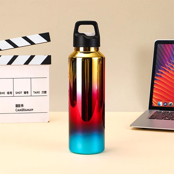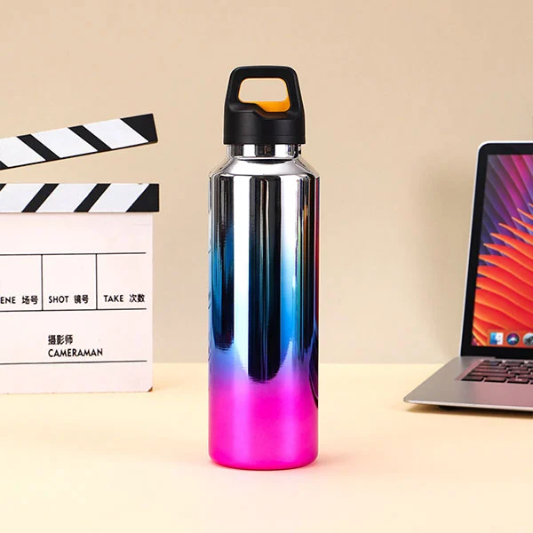Vakuumisolationsschicht aus Edelstahl, isolierte, mit einem Knopf zu öffnende Flasche hat eine längere Isolier-/Kühlzeit als gewöhnliche Reisebecher.