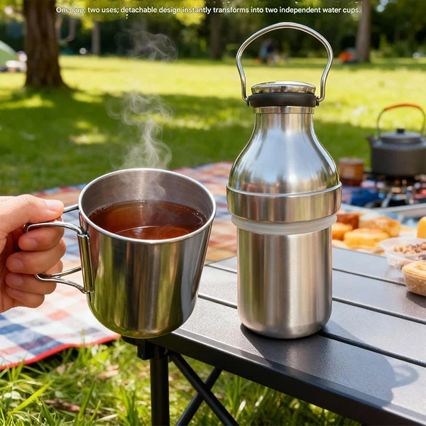 Kudikes langlebige, abnehmbare Isolierflasche für den Außenbereich ist eine sehr coole Thermoskanne. Warum sagen Sie das? Aufgrund ihres einzigartigen Designs und ihrer Funktionalität lässt sie sich in zwei Tassen zerlegen, sodass beim Kauf einer Thermoskanne diese von mehreren Personen gemeinsam verwendet werden kann. Außerdem ist es mit einem Griff ausgestattet, wodurch es sehr bequem zu tragen ist. Ich glaube, dass unsere Thermosflasche alle Aspekte Ihres wundervollen Lebens erfüllt. Ganz gleich, ob Sie campen, pendeln, wandern oder reisen, wir können Behälter bereitstellen, die sowohl isoliert als auch kalt sind und so den Wegwerfabfall wirksam reduzieren.
