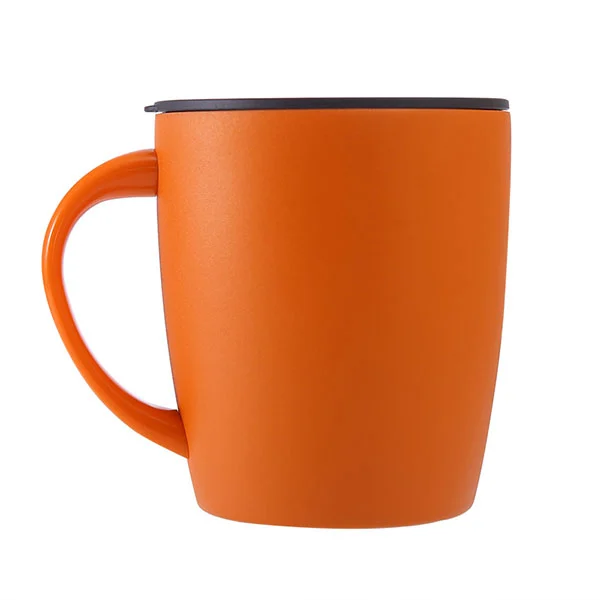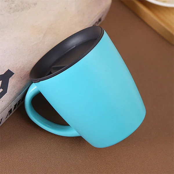 Dies ist eine trend aussehende Kaffeetasse aus rostfreiem Stahl mit Deckel, abgerundetem Erscheinungsbild. Lassen Sie Sie gut gelaunt, auf dem Tisch gelegt, ist auch ein Kunstwerk.