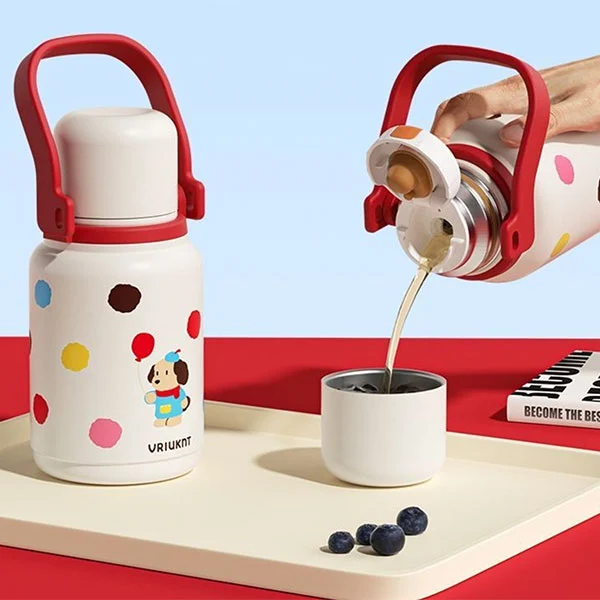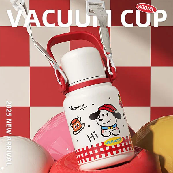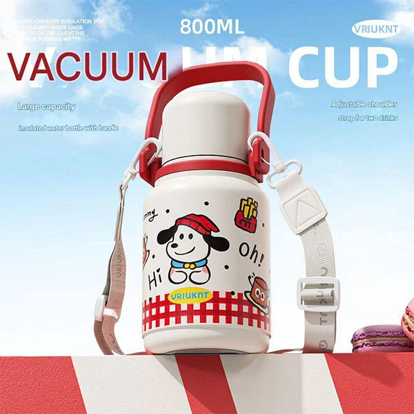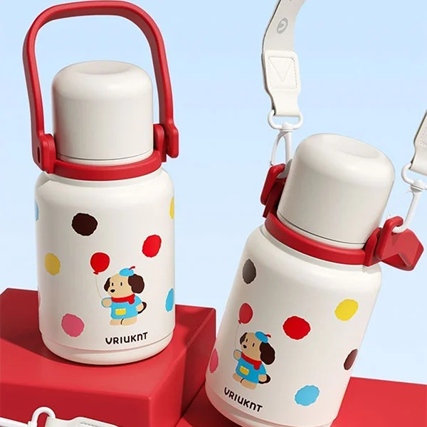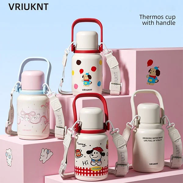 Die isolierte Isolierflasche kann als unverzichtbare Wasserflasche für Kinder auf dem Weg zur Schule oder auf Reisen verwendet werden. Sie eignet sich sehr gut für Kinder, da ihre Hände klein sind und die Riemen ihre Hände frei machen können