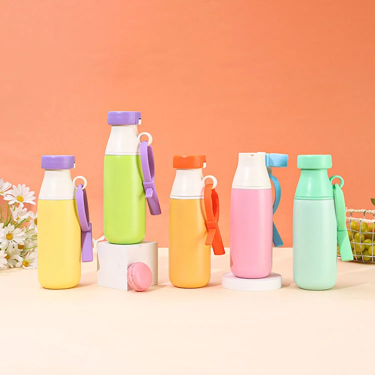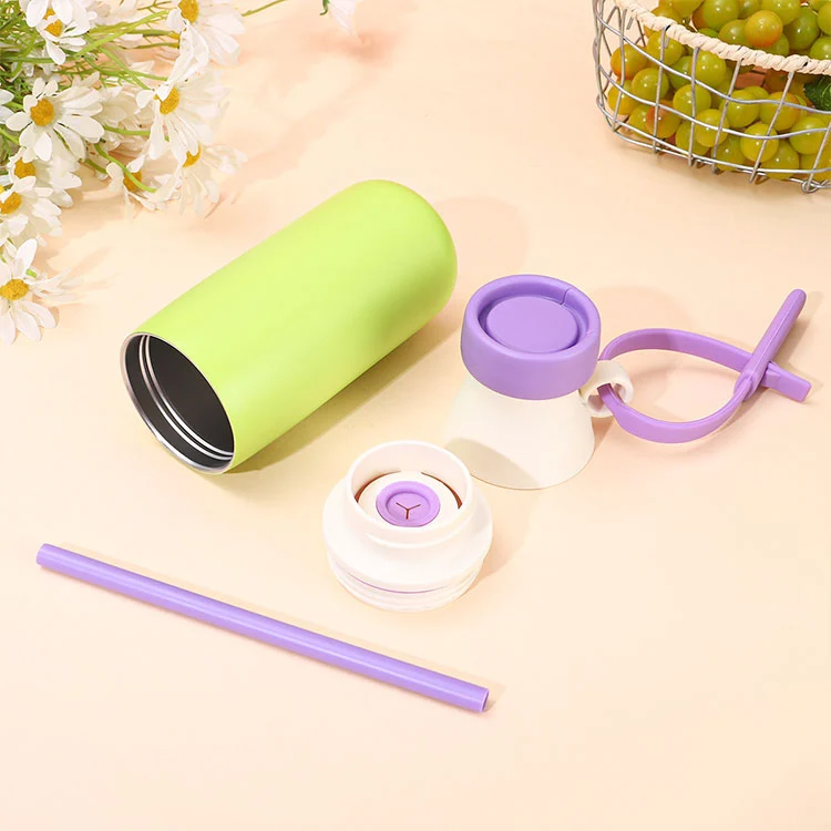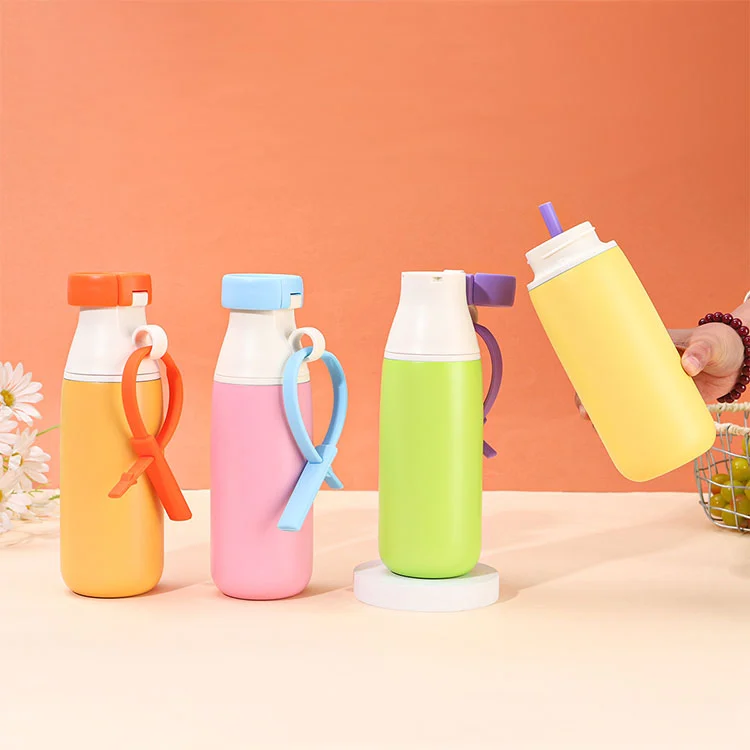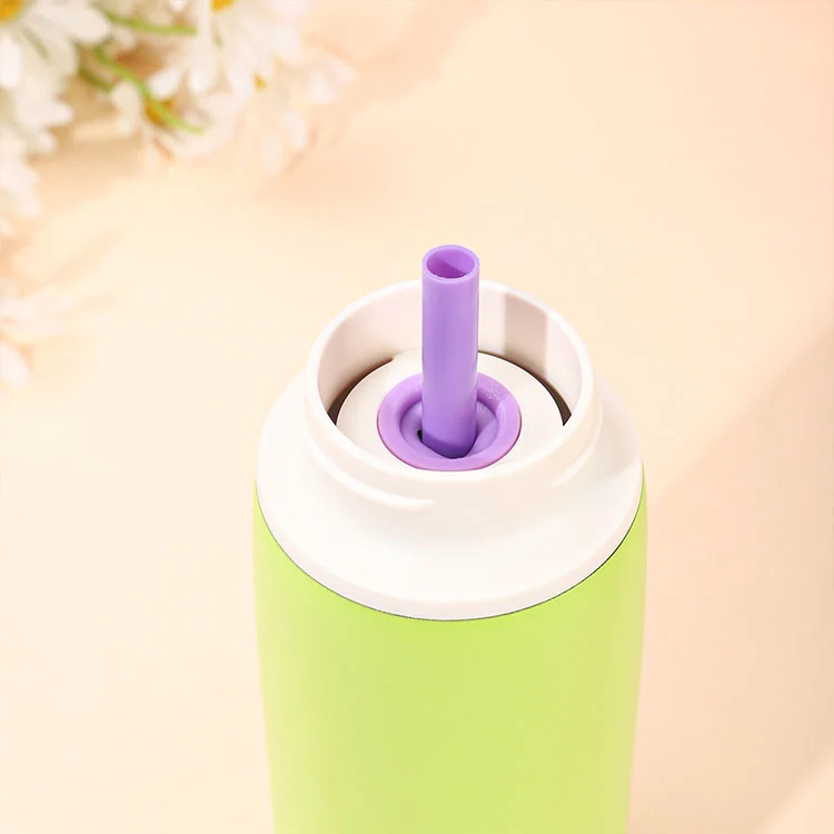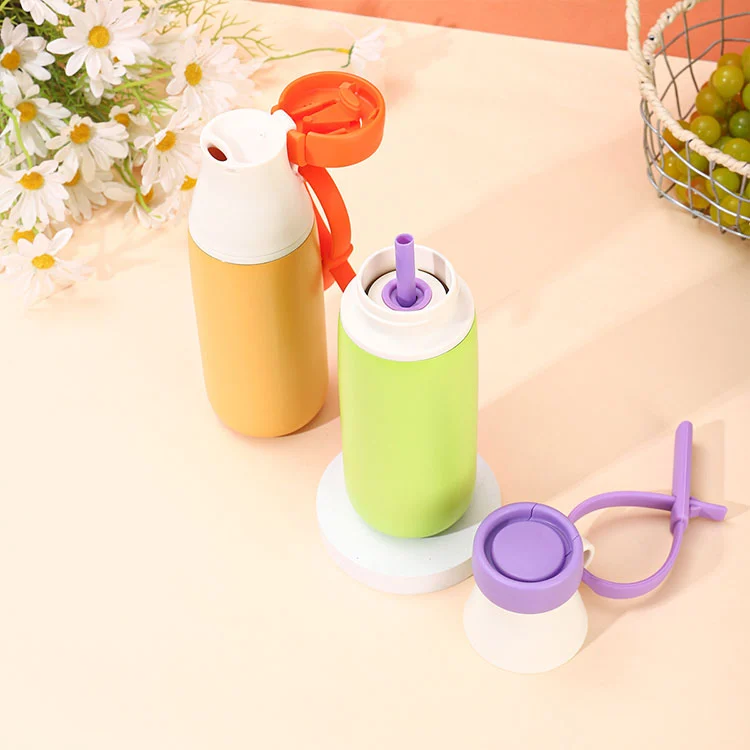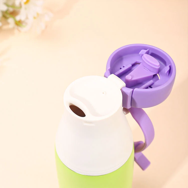 Die vakuumisolierte Flasche aus Edelstahl 304 gehört zu den Dopamin-Milchflaschen und verfügt über einen runden Deckel, der sich leicht durch Ziehen öffnen und durch einfaches Drücken verriegeln lässt, um ein versehentliches Öffnen des Flaschenverschlusses zu verhindern.