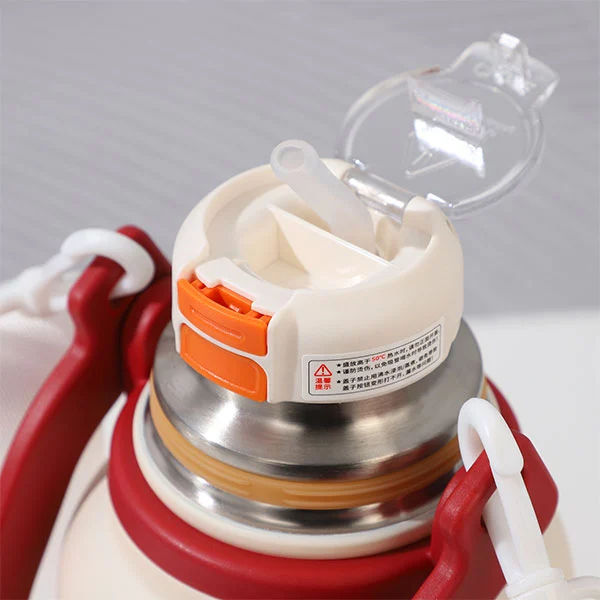 Der dreistufige Becherdeckel ist mit einem wiederverwendbaren Strohhalm zum einfachen Trinken und einer weiten Öffnung zum einfachen Trinken ausgestattet. Beim Autofahren nutzen wir besonders gerne Strohhalme; Mit dieser Thermoskanne können Sie Ihren Blick ganz einfach auf die Straße richten, während Sie Ihr Getränk genießen. Zu beachten ist, dass die Drehvorrichtung am Becherdeckel nicht abgedichtet ist und dieser Becherdeckel nicht vollständig auslaufsicher ist.